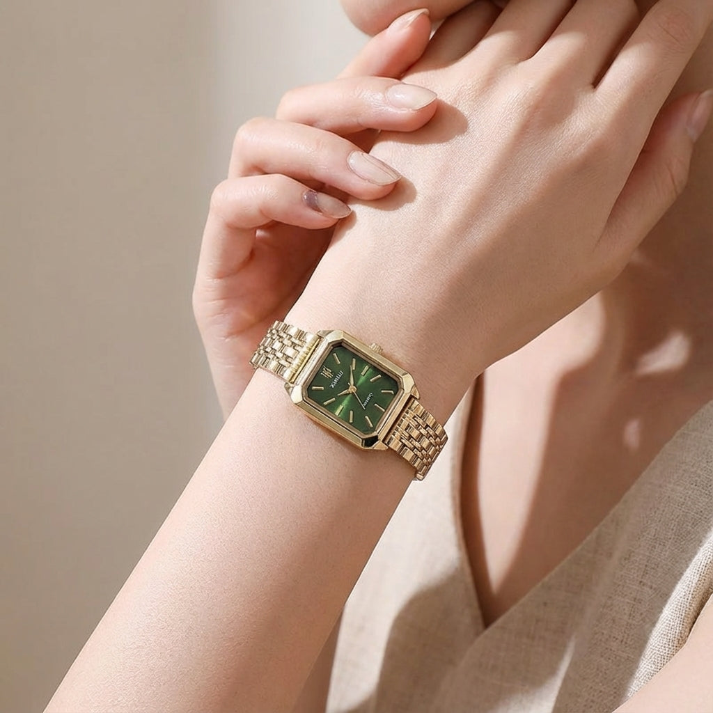 Το Aura είναι ένα κομψό ρολόι με τετράγωνο καντράν και minimal-steel bracelet — διακριτικό, κομψό και ιδανικό για κάθε στιγμή της ημέρας.