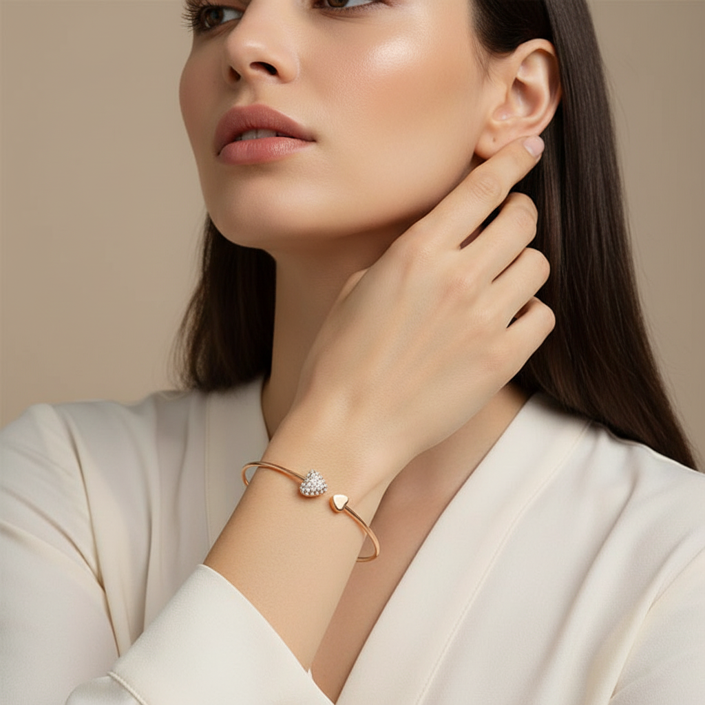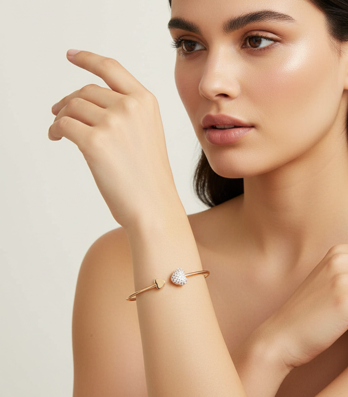 Το Aphro είναι ένα εκλεπτυσμένο σετ βραχιολιών με διπλή καρδιά και λεπτομέρειες που λάμπουν — σχεδιασμένο για να εκφράζει θηλυκότητα και αγάπη σε κάθε εμφάνιση.